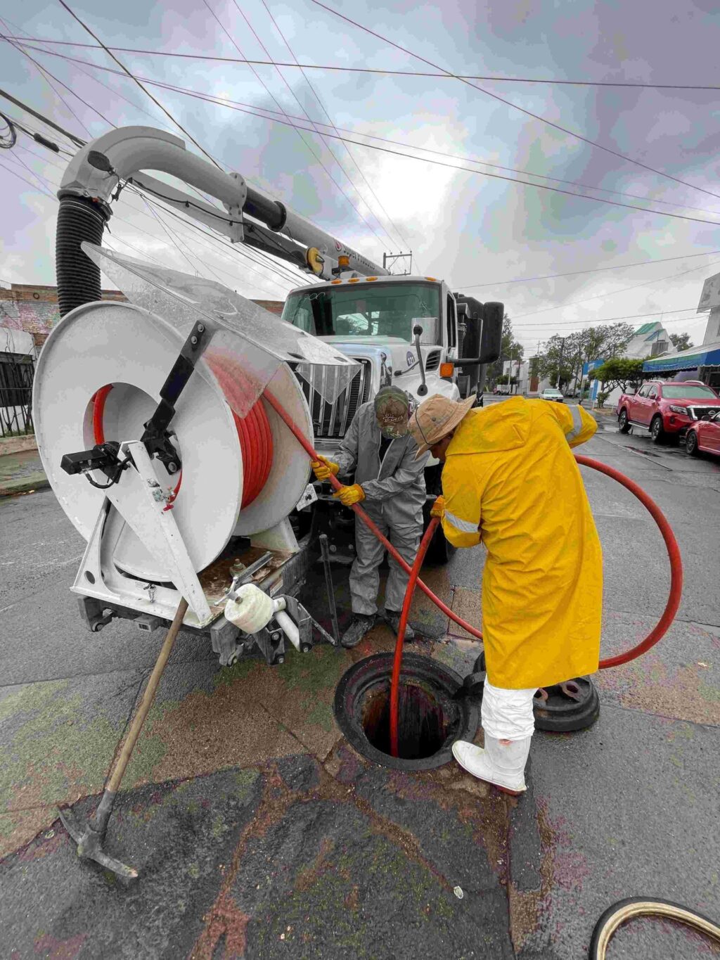Se estableció una ruta para que los tres camiones tipo camel realicen las labores de mantenimiento preventivo y correctivo, recorriendo las vialidades en las que se acumula el agua para evitar inundaciones mayores y afectaciones a infraestructura, vehículos y habitantes.