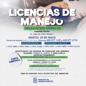 El Municipio de Aguascalientes informó que se llevará a cabo una nueva jornada de renovación de licencias de manejo el...