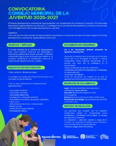 El Instituto Municipal de la Juventud de Aguascalientes (IMJUVA), convoca a las y los jóvenes del municipio de Aguascalientes a participar en el proceso de selección para formar parte del Consejo Municipal de la Juventud 2025-2027.