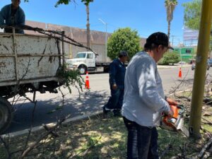 Durante la jornada se llevaron a cabo trabajos de desmalezado, despalmado y limpieza general en guarniciones centrales, además de la poda de árboles secos y ramas en riesgo. De forma simultánea, se realizó la limpieza de camellones laterales y banquetas, el barrido manual y la recolección de residuos sólidos. También se atendieron arrastres de arena y tierra, y se aplicó pintura en guarniciones centrales.