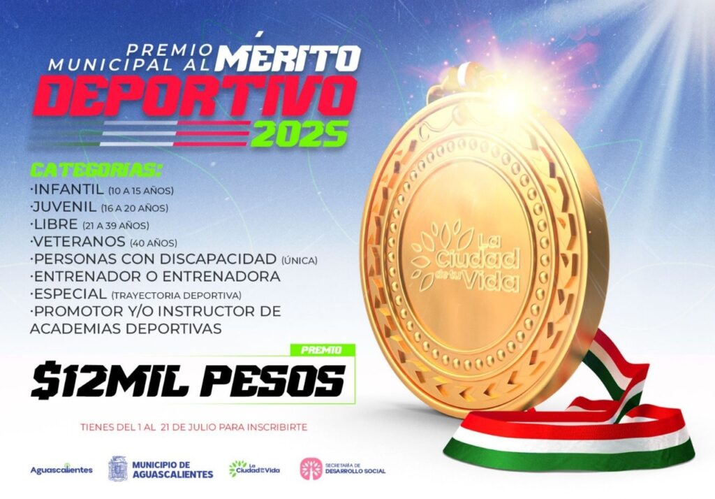 La recepción de propuestas para el Premio Municipal al Mérito Deportivo es en la calle 05 de Mayo # 122, 2º piso, esquina con  calle Allende, Zona Centro hasta las 15:00 horas del lunes 21 de julio del presente año. Para mayor información está disponible el teléfono 449 498 12 04, así como el Facebook: Deportes Municipio Aguascalientes y al correo electrónico lcabrera@ags.gob.mx. Las bases de la convocatoria se pueden consultar en  https://www.ags.gob.mx/SEDESOM/convocatoria/Convocatoria%20PMMD%202025.pdf