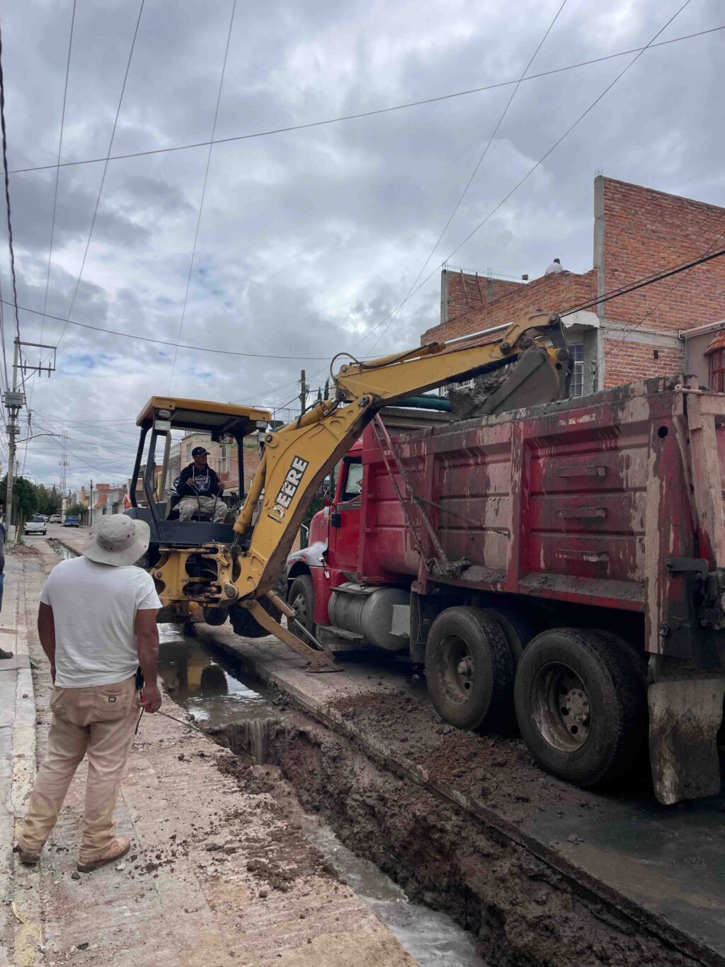 El Modelo Integral de Aguas de Aguascalientes (MIAA)  trabaja en la sustitución de 80 metros lineales de tubería de 10 pulgadas de diámetro  en la calle Gilberto López Velarde en el fraccionamiento Versalles II.