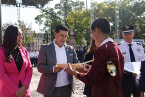 El presidente municipal, Leo Montañez, encabezó el izamiento de bandera en homenaje al 450 Aniversario de la Fundación de la Ciudad, acto...