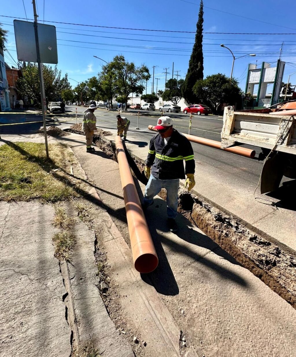 El Modelo Integral de Aguas de Aguascalientes (MIAA) trabaja en el cambio de tubería de alcantarillado sanitario en la av. Independencia entre la calle Manuel Ávila Camacho y Alfredo Lewis, en la colonia Industrial, para prevenir fugas y evitar riesgos sanitarios a los habitantes.