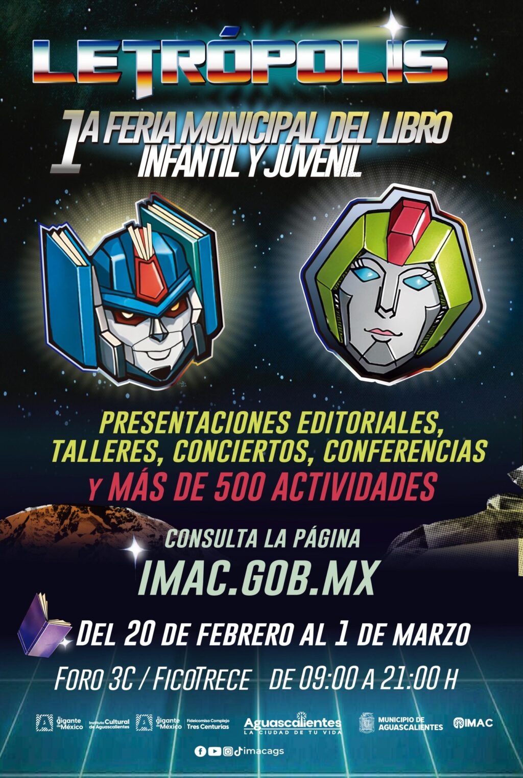 Con más de 500 actividades dirigidas a niñas, niños, jóvenes y familias, el Instituto Municipal Aguascalentense para la Cultura (IMAC) presentó el programa general de la 1ª Feria Municipal del Libro Infantil y Juvenil, Letrópolis, que se llevará a cabo del 20 de febrero al 1 de marzo, en el Foro 3C de FICOTRECE, de 9:00 a 21:00 horas.