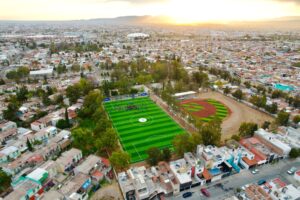 Cabe señalar que anteriormente también en este parque se rehabilitó el campo de béisbol mismo que ahora cuenta con pasto sintético, además de dugouts, bancas metálicas, malla ciclónica, postes, reflectores y luminarias led.